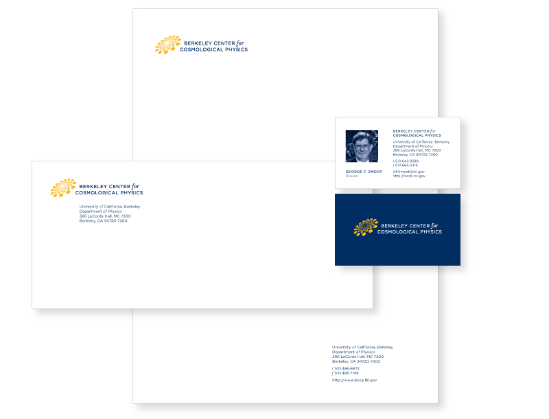 Design an identity that visually captures the essence of Berkeley Center for Cosmological Physics, founded by Nobel Laureate George Smoot, and its study of cosmological physics.