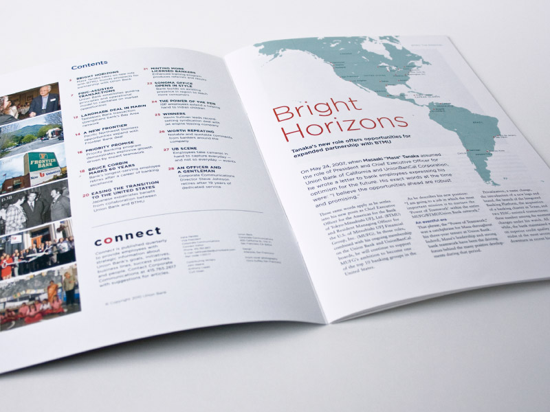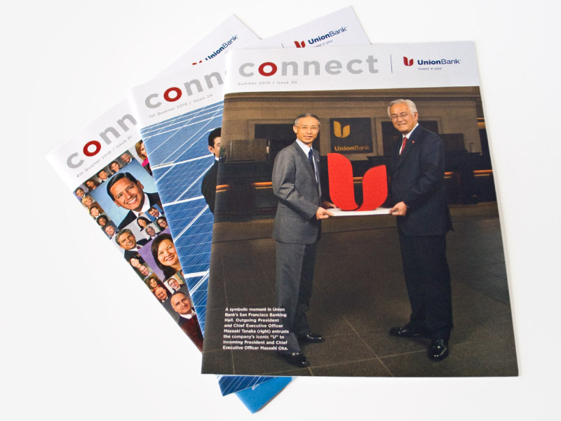 Design and develop the ongoing quarterly magazine, Union Bank Connect Magazine, for Union Bank.